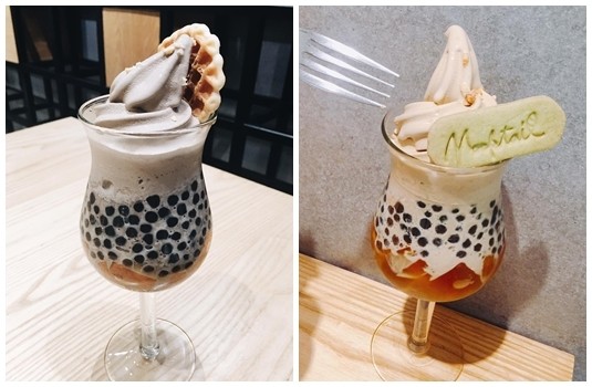 所有甜點控&珍珠控的女孩一起放聲尖叫吧!!!!!沒錯這杯「珍珠奶茶霜淇淋」,將所有夢幻的甜點聚集成一杯,由上到下依序為「抹茶餅乾、霜淇淋、珍珠、茶凍」,光是看到這一幕都覺得唾腺失控了,每一口吃起來都是大大的滿足啊!