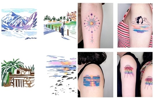 Loyu羅魚目前在遠路刺青工作室服務,工作室據點位於台北,她喜愛風景、自然與心靈能量的主題。前陣子在IG限時動態中邀請網友將喜歡的風景照發給她,並分享一段故事,她再將照片速寫出草圖,Loyu運用了有點像是蠟筆的筆觸,速寫出許多有故事的風景,目前都發布在精選動態中喔,有興趣的女孩可以去看看。如果真的不知道要刺什麼圖案,不妨就選一張喜歡或有意義的照片給Loyu,她會為妳產出專屬於妳的作品喔!作品中也有一部分細膩的宇宙圖騰系列,Loyu相信心靈的力量,透過自我的發掘與了解,能讓身心靈的能量都更強壯,有位客人將圖案刺在身體的中心,也象徵著有一股能量在中心喔!