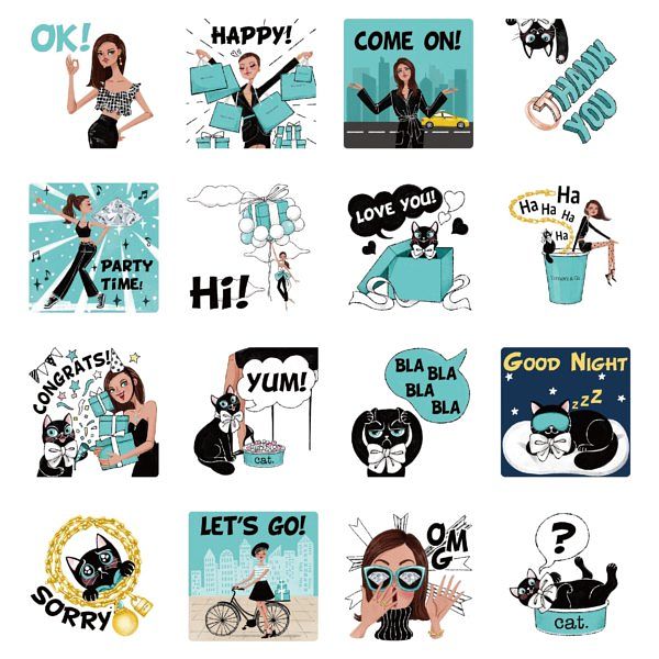 Tiffany宣佈台灣LINE官方帳號正式上線,專屬平台讓品牌愛好者即時收到最新情報,並提供個人化活動預約服務。歡慶品牌官方帳號上線,Tiffany特別設計16款動態貼圖,以Tiffany Girl形象為靈感,加入品牌歷久彌新的珠寶作品,包括Tiffany T、HardWear、Tiffany Keys等系列。動態貼圖充滿紐約都會風格。可愛俏皮的小黑貓攜手相伴,以詼諧逗趣的表情呈現包括「Love You」、「Thank You」、「Good Night」、「Sorry」等實用文字。品牌高識別度元素夢幻藍盒與購物提袋貫穿其中,結合在地化計程車與淑女腳踏車,全新貼圖不僅實用更充滿設計巧思。