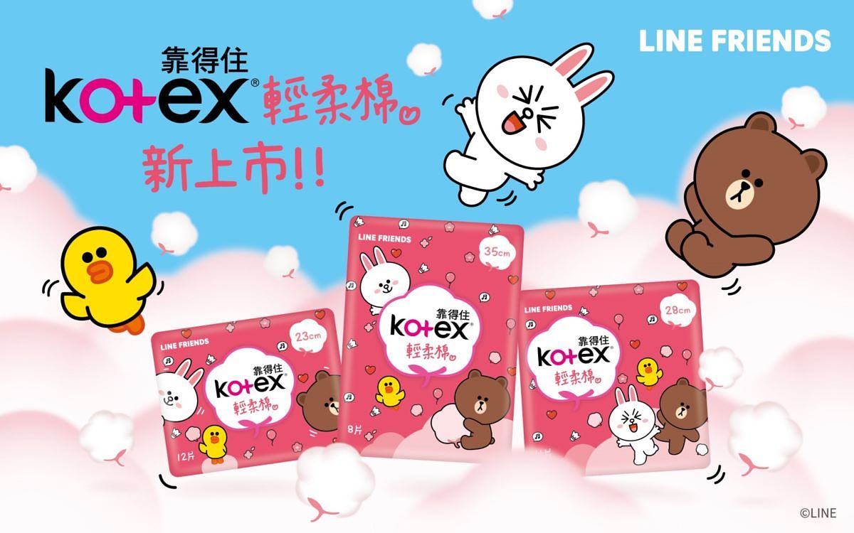 喜愛熊大與兔兔的粉絲有福了,持續在產品包裝與行銷上創造新話題、帶動潮流的女性衛生用品領導品牌Kotex靠得住,攜手超人氣BROWN & FRIENDS推出全新包裝,讓熊大、兔兔躍上全系列輕柔棉!鮮豔桃紅的亮眼色系搭配表情超Q萌的高人氣BROWN & FRIENDS角色熊大、兔兔與莎莉,可愛感大爆棚,讓人完全無法抗拒!包裝新升級的Kotex輕柔棉BROWN & FRIENDS系列共有三種長度,分別是23公分、28公分與35公分,自5月起已陸續攻占各大通路賣場貨架,少女們看了紛紛驚呼「好期待生理期來到」、「可愛到捨不得拿來用」!