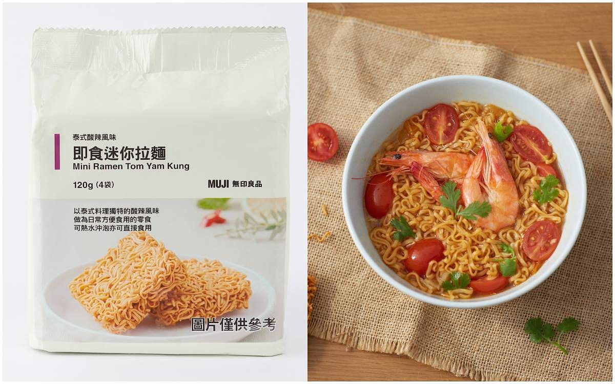 或是使用即食迷你拉麵再加上沖泡湯塊,煮出一碗胃口大開的泰式風味番茄酸辣鮮蝦麵。
