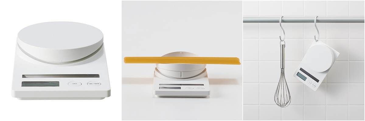 不論是烹調料理或烘焙點心都需要一台「電子秤」,幫助料理者精準掌控食材與調味料用量,MUJI無印良品的太陽能廚房用秤是一款使用太陽能電池與鈕釦電池的兩用電源電子秤。在明亮處,僅靠太陽能電池即能使用。將秤盤倒過來擺放,還能量測粉狀或條狀物品。最大可秤2kg,最小是1g。