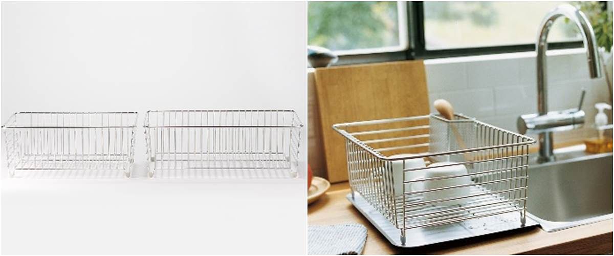 飯後清潔全家人的碗盤,卻常常發現數量太多,沒地方擺放晾乾嗎? MUJI無印良品提供不易生鏽的不鏽鋼瀝水籃並搭配購買傾斜式托盤,為您營造更多空間放置待乾的碗盤。不鏽鋼傾斜瀝水盤翻面即可改變排水流向的設計,也適合不同大小的洗水槽。