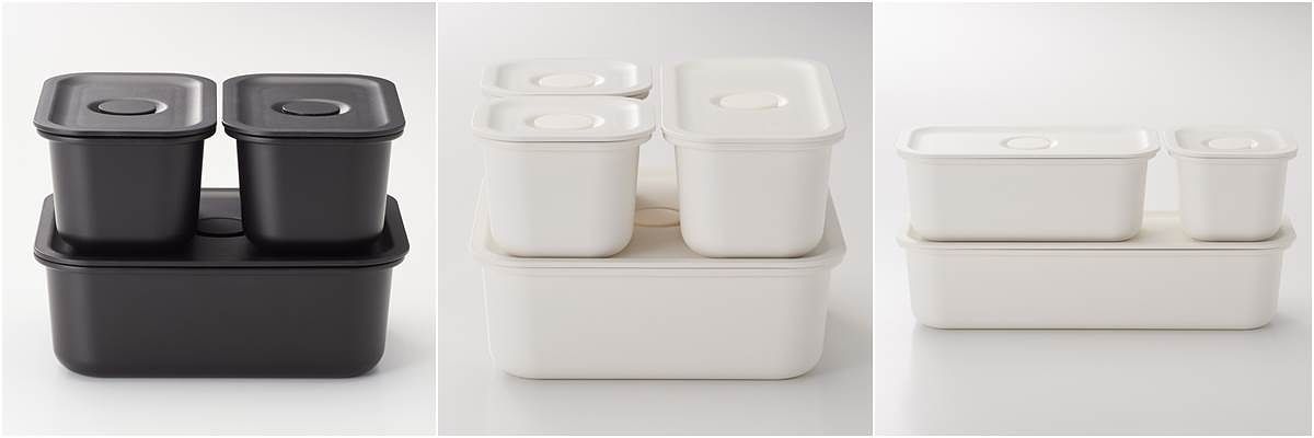 許多顧客為了三餐菜色而煩惱,MUJI無印良品提議可多準備一些料理容易又耐放的冰箱常備菜,降低每日備餐的時間,推薦使用不同尺寸的聚丙烯密閉式便當盒,不僅可放配菜,也可直接當作便當盒使用,輕巧且容易攜帶。