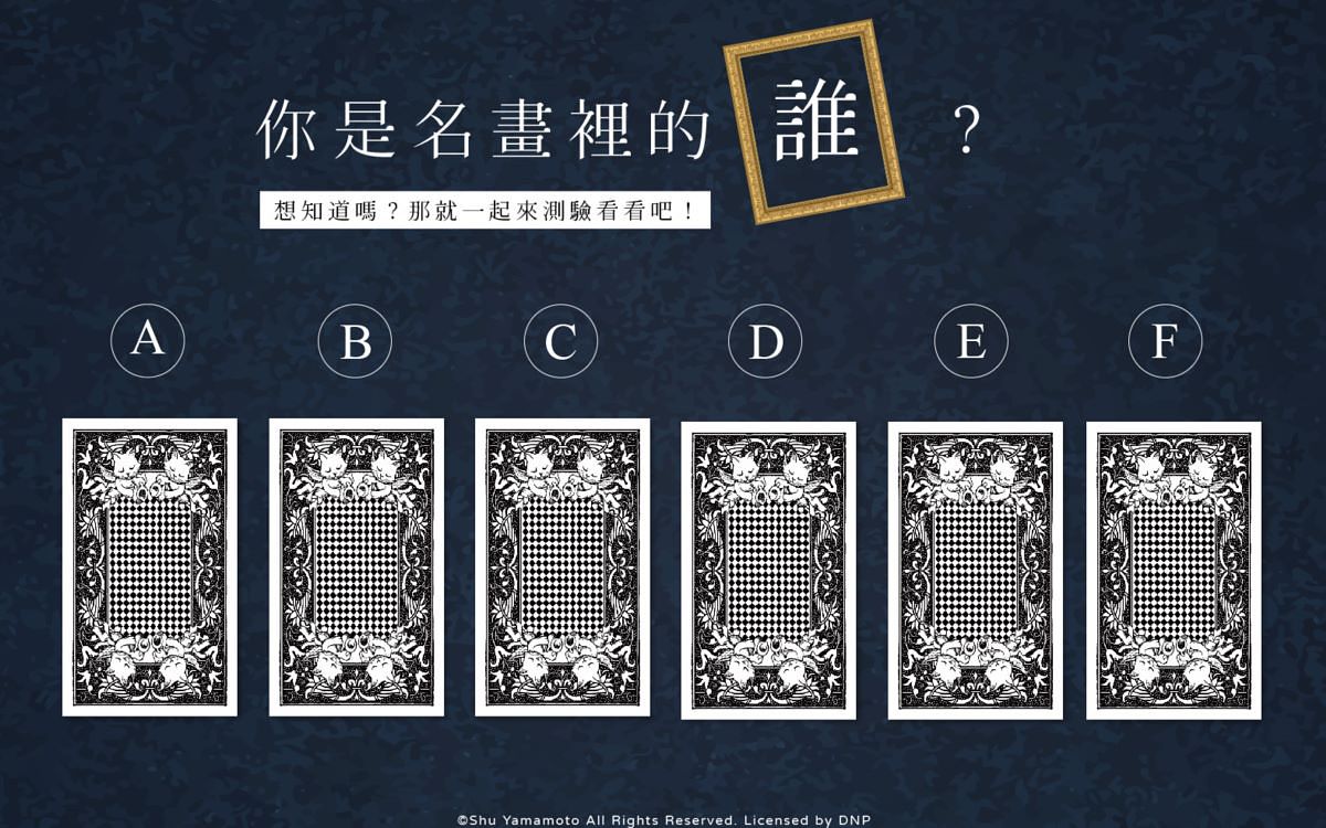 為了本次「屬於你的桌上貓美術館」立體化公仔企劃,山本修老師全新創作22張塔羅卡牌,只要參與本次募資,每盒公仔皆附贈一張隨機一般款卡牌,買越多搜集成套機會越高;粉絲也可以直接選購整套塔羅卡牌組,即可獲得22張一般款卡牌與3張隨機閃卡特別款,將共25款塔羅卡牌一次全收藏。現在,就讓塔羅貓們為你進行一場獨一無二的「貓咪占卜」吧!從下圖中A到F共6張卡牌中選出1張,讓貓咪為你讀出潛意識裡的專屬秘密。