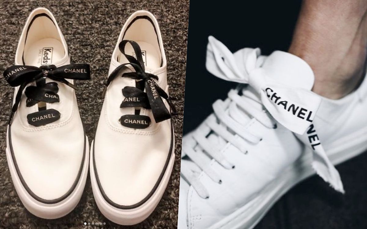 精品緞帶很適合繫在素面小白鞋上,裝飾起來效果超棒!