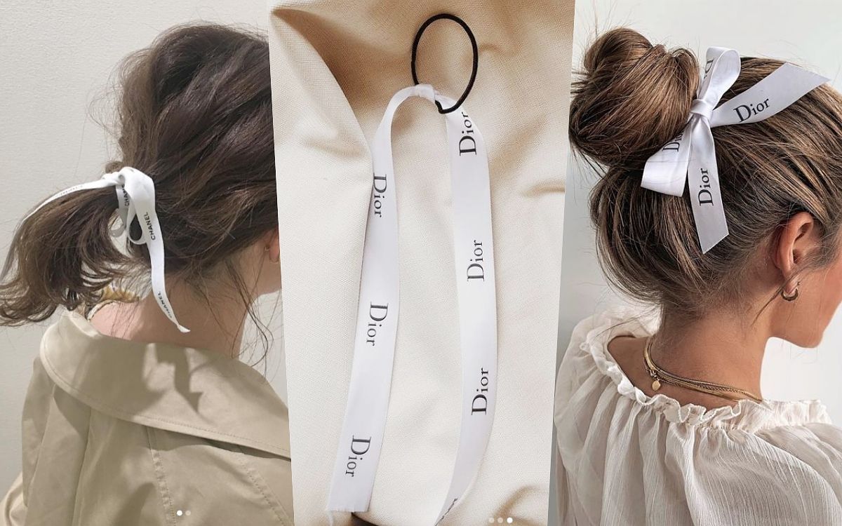 國外很流行將精品緞帶與髮圈綁在一起當作髮束使用,綁成低馬尾或丸子頭都好看。
