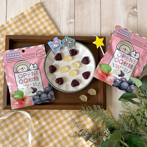 OPEN!QQ軟糖(水蜜桃葡萄口味) 45元