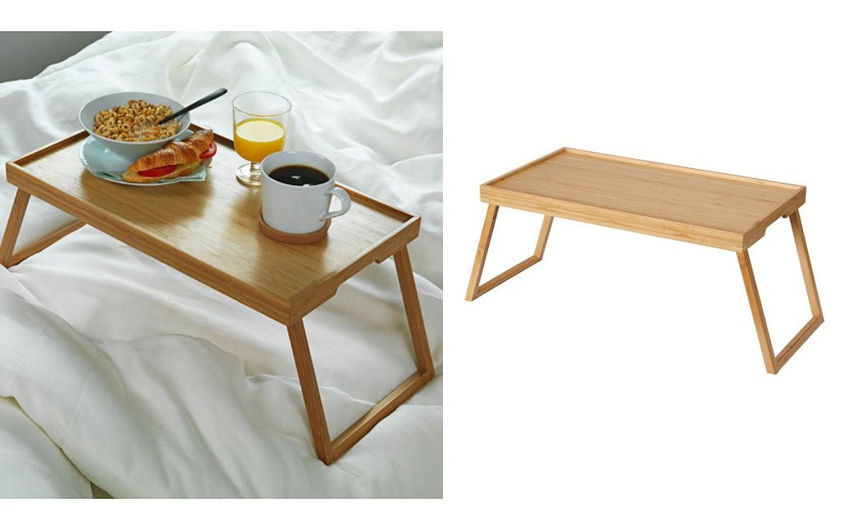 每到假日就想慵懶的待在床上?有了這款床上托盤就能實現願望,可平穩擺放杯、盤,讓你邊吃早餐邊看電視、用電腦,享受悠閒的時光!托盤支腳採用折疊式收納,用不到時也不佔空間!
