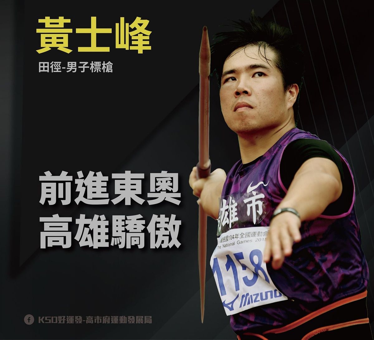 圖片來源:高雄市政府運動發展局同為標槍好手的高雄驕傲黃士峰,在2016年世錦賽是全國紀錄保持人,於2017世大運上曾奪得銅牌,今年也在世界田徑洲際巡迴賽東京站獲得男子標槍銅牌。