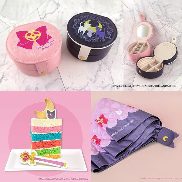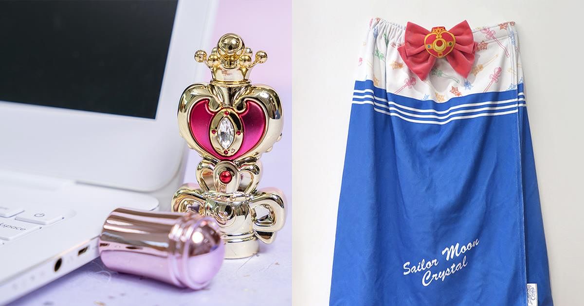 全新週邊商品大公開,美少女戰士系OOTD推薦偽項鍊印花短袖T、粉紅棒球帽、還有露娜造型手把雨傘、小巧實用皮革飾品盒,全身配件一次買齊!當然美少女戰士系也有WFH商品,迷你版Spiral Heart Moon Rod隨身碟、LED小夜燈在家工作也超有氣氛,還有超美浴巾、最犯規的是燙金瓷盤、讓你在家裡用餐也美美的!