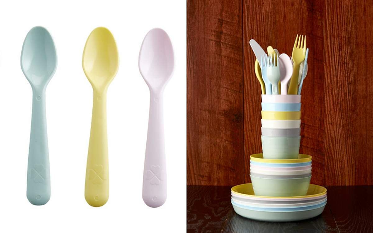 明亮又活潑的顏色搭配塑膠材質,不含添加物,可重複使用,適合做為免洗餐具的替代品。