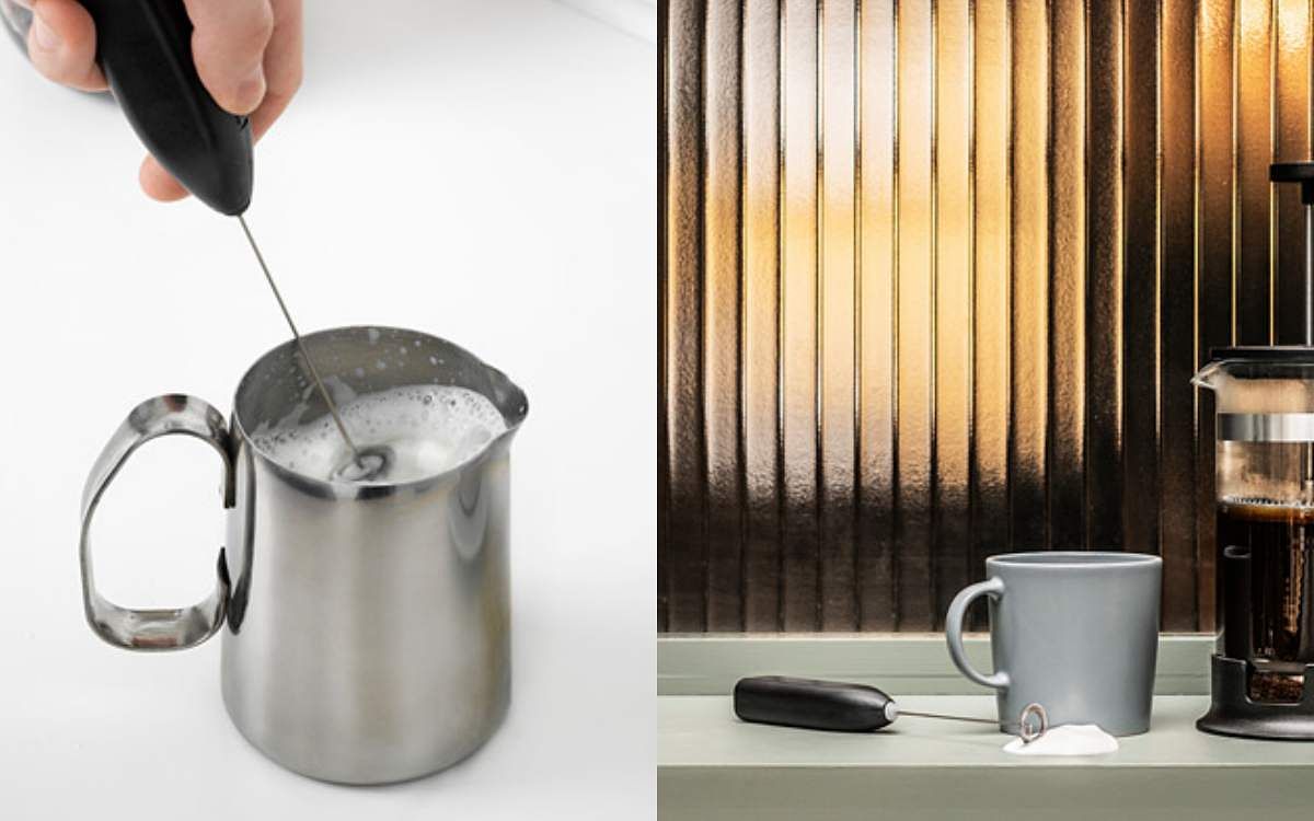 輕巧的奶泡器適用於冷熱牛奶,牛奶打泡只需約15到20秒。