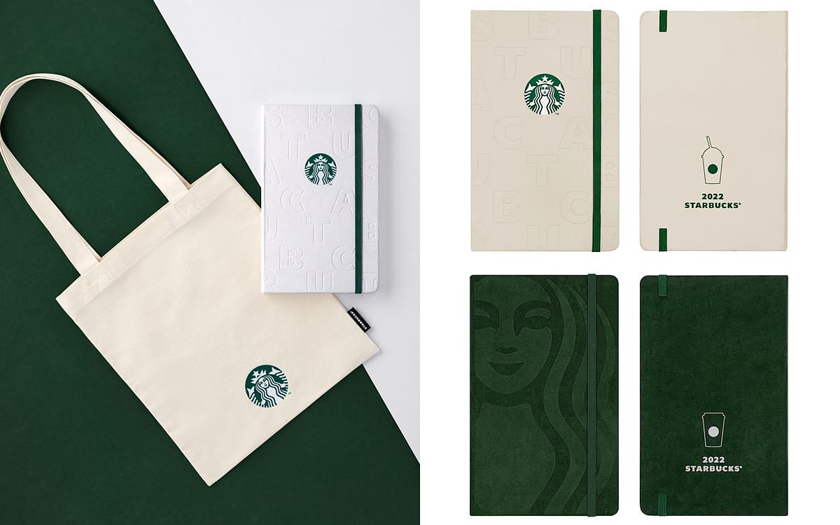 展新的一年即將來臨,星巴克於9月1日全門市上市22年曆提袋組,本次年曆兩款設計將深綠色的經典女神及白色優雅的STARBUCKS簡約字設計烙印在封面上,呈現星巴克經典的元素。再以線條繪製外帶杯、星冰樂杯,將可愛簡單的小插圖印刷在年曆背面,象徵咖啡陪伴在我們每個人的生活中。