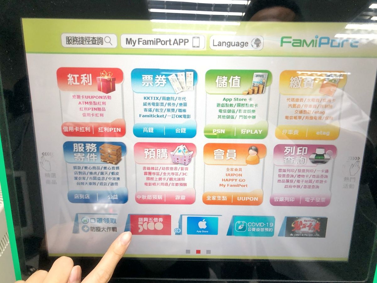 領取:10/8至10/21紙本振興五倍券領取時間,前往選定之「全家」店舖並透過FamiPort機台的振興五倍券專區的「領取」功能,或透過使用全家app或My FamiPort app生成條碼於櫃檯領取,領券成功者,可享400元「全家」滿額購物金及屈臣氏100元滿額購物金等雙重優惠。
