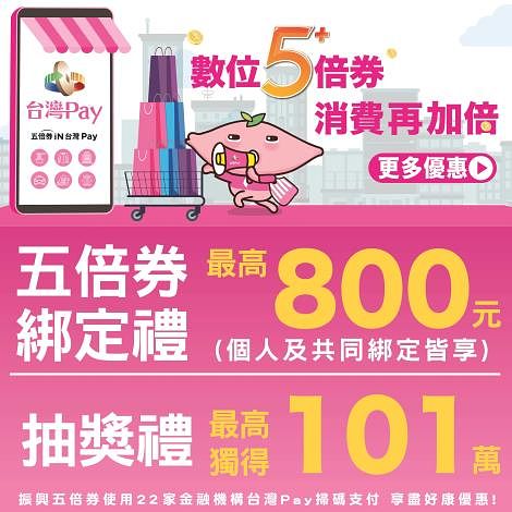 五倍券綁定禮:綁定最高可獲得800元