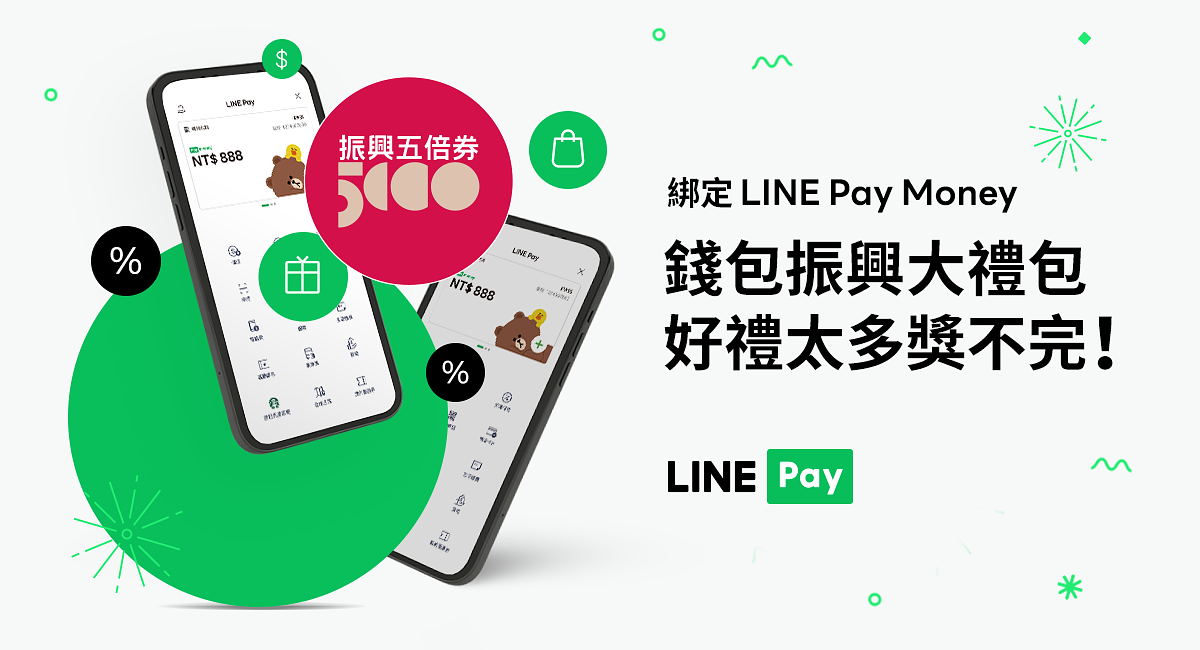 LINE Pay Money也是許多人振興五倍券綁定的熱門選項,除了使用率高外,還推出了綁定禮最高享LINE POINTS 400點的優惠,包含首3日綁定即享LINE POINTS 100點,新戶綁定再加碼100點,共同綁定最高再享200點