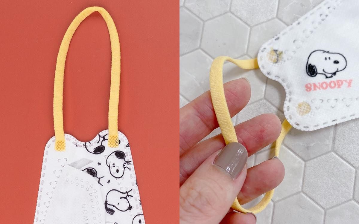 鵝黃配色的口罩繩彈性很好,材質細膩,戴著一整天也不用擔心耳朵會痛。