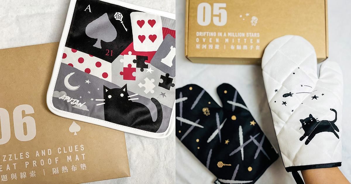 邁入11月,準備迎接寒冷天氣,少不了在家準備暖呼呼的熱湯暖身,〈 星河漫遊 〉布隔熱手套以及〈 謎題與線索 〉隔熱布墊也就成為冬天不可或缺的居家備品;前者隔熱手套正反面有雙色設計,加上雙手不同的印花圖樣,讓使用上更方便;後者隔熱布墊則印上拼圖、鑰匙、西洋棋、撲克牌等帶有推理懸疑色彩的元素,不僅具有實用性,也可為生活質感加分。另外,受到疫情帶動的自煮風潮,不少人已習慣在家手沖咖啡或是調製飲品,此次推出的〈 星空下 〉手沖咖啡壺,亮面的黑色壺身,刻上城市與星空,讓人在享受一杯好咖啡時,也能擁有好心情。〈 偵探 MOON 的冒險 〉冰塊盒,有生動的恐龍、太空船、以及黑貓MOON造型,可愛的造型冰塊放入特調飲品中,增添視覺的變化。除此之外,冬天正是霧霾較嚴重的季節,也推出黑色與藍色2款的〈謎題與探偵遊戲〉抗霾口罩,還有兼具卡夾功能的〈散落的拼圖 〉布口罩隨行夾,可隨身收納。