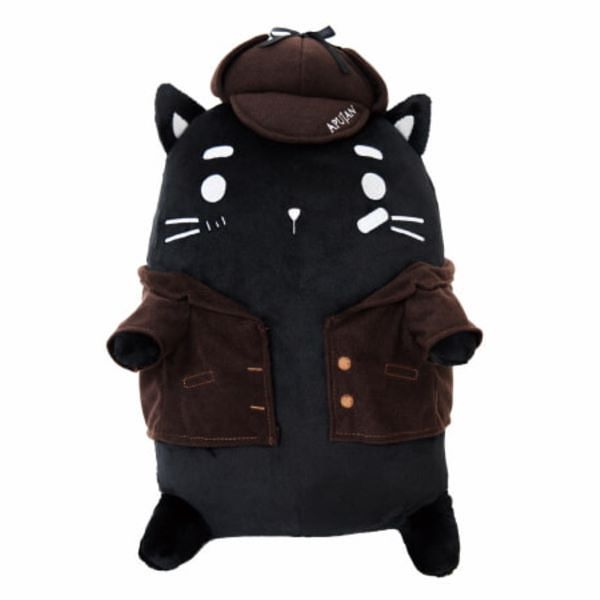 「恐龍、星星與探偵遊戲」聯名系列,圍繞APUJAN創意總監詹朴個人手繪的角色「黑貓MOON」,不僅設計一組廚房集點商品系列,也將日常的甜點、飲品、濕紙巾換上主題包裝,集點商品則首推高有40公分的〈大偵探MOON〉娃娃,「MOON」戴上獵鹿帽、並換上風衣外套,看起來可愛又討喜,是陪伴日常生活的好伙伴。