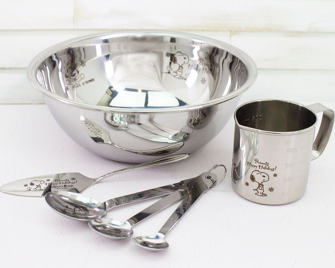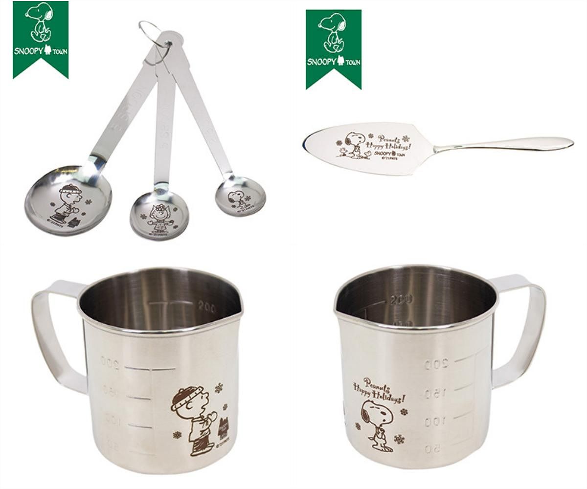 廚房裡的不銹鋼器具很常見,也往往與美觀兩個字搭不上邊,但若配上了史努比的圖案就成了最完美的風格商品 (笑)!這次的聖誕佳節系列共推出了不鏽鋼盆、量杯、量匙、以及蛋糕刀,清一色都是環繞著蛋糕為主題的商品!