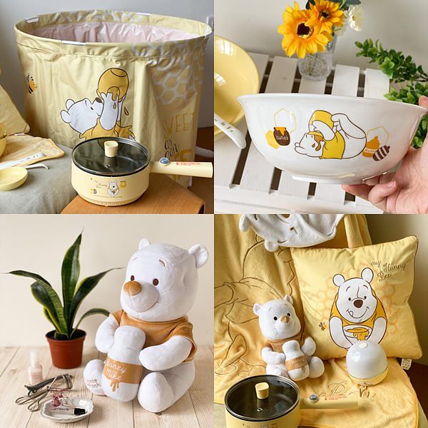 11月17日下午15:00則首推超可愛的「絨毛錄音公仔」,以香檳金搭配LOGO繡線,可簡易錄音作為傳情好禮;「絨毛磁鐵娃娃」共有銀河藍與香檳金兩款配色,身體還可分開變成強力吸磁;「雙層多功能推車」,兼具推車及收納功能,可分層儲物,附木蓋超可愛,具360度旋轉滑輪及煞車輪,可隨心移動,搖身變成茶几、邊桌使用超方便。「大陶瓷碗(附湯匙)」,以小熊維尼經典圖素為主,包括維尼最愛的蜂蜜罐與蜂巢..等圖案點綴,可愛到令人心動融化;「金邊抱枕」使用絨布材質摸起來柔軟舒適,最適合在懶洋洋的冬天抱著賴在床或是沙發上;療癒又實用「摺疊多功用桶」約直徑70x高68cm的超大容量,可摺疊收納不占空間。