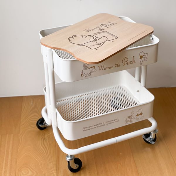 分層儲物附木蓋,可當邊桌使用;360度旋轉滑輪,煞車輪設計