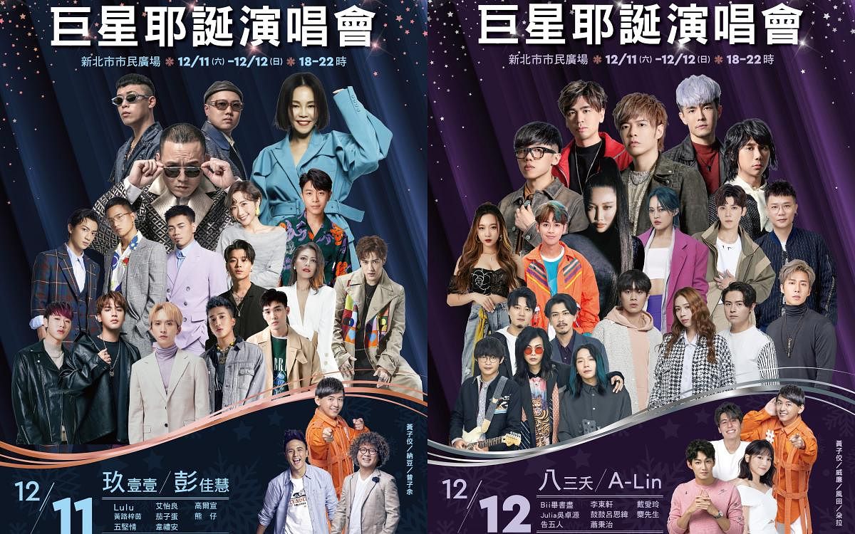 新北歡樂耶誕城將於12/3(五)開城點燈!最受矚目的「巨星耶誕演唱會」則將於12/11(六)-12/12(日)連續兩天,從晚上六點至十點於市民廣場熱鬧開唱,演唱會卡司邀請到彭佳慧,玖壹壹、A-Lin,八三夭、艾怡良、高爾宣OSN、五堅情、韋禮安、告五人、李東軒、戴愛玲、麋先生、鼓鼓呂思緯、蕭秉治、Julia吳卓源、Bii畢書盡等人,絕對超HIGH!