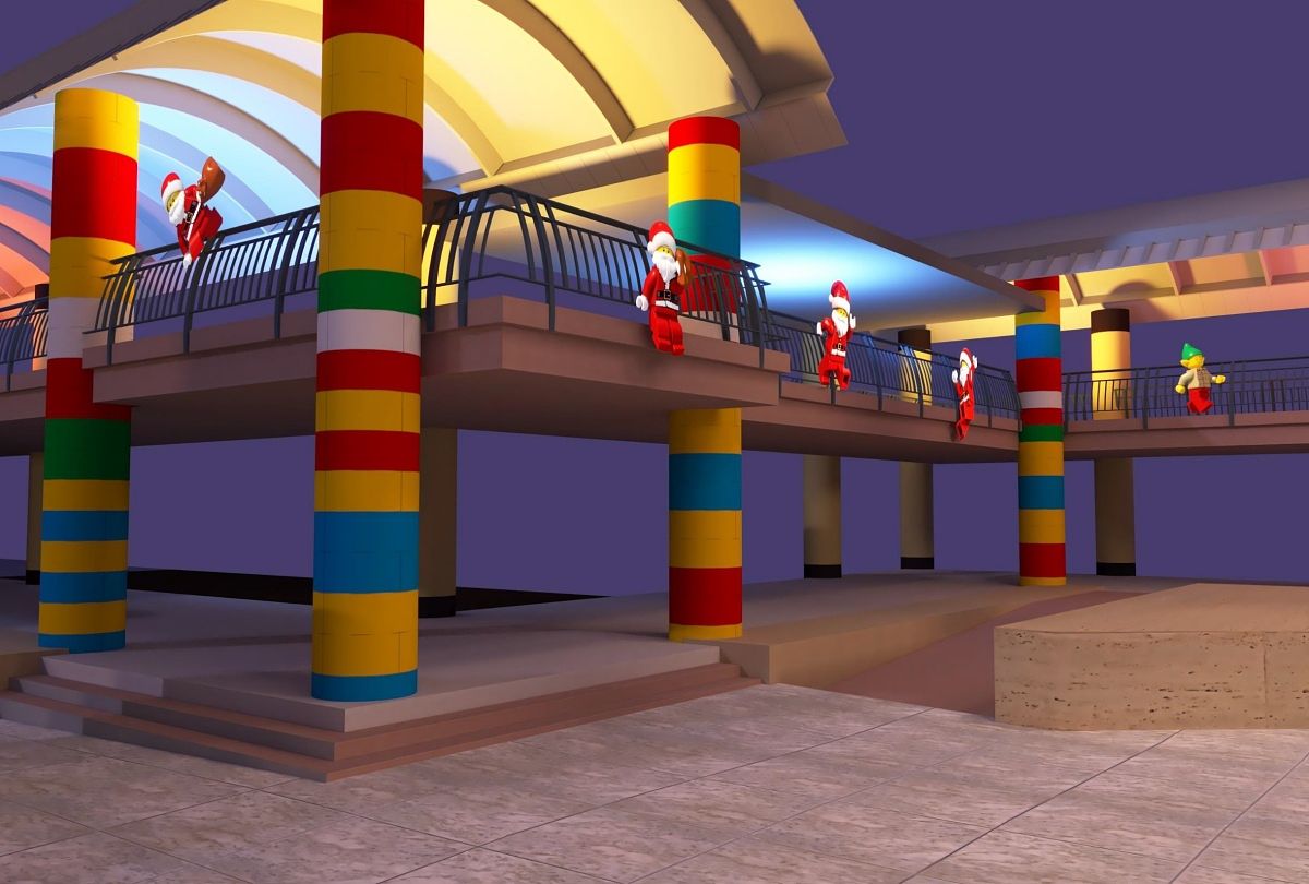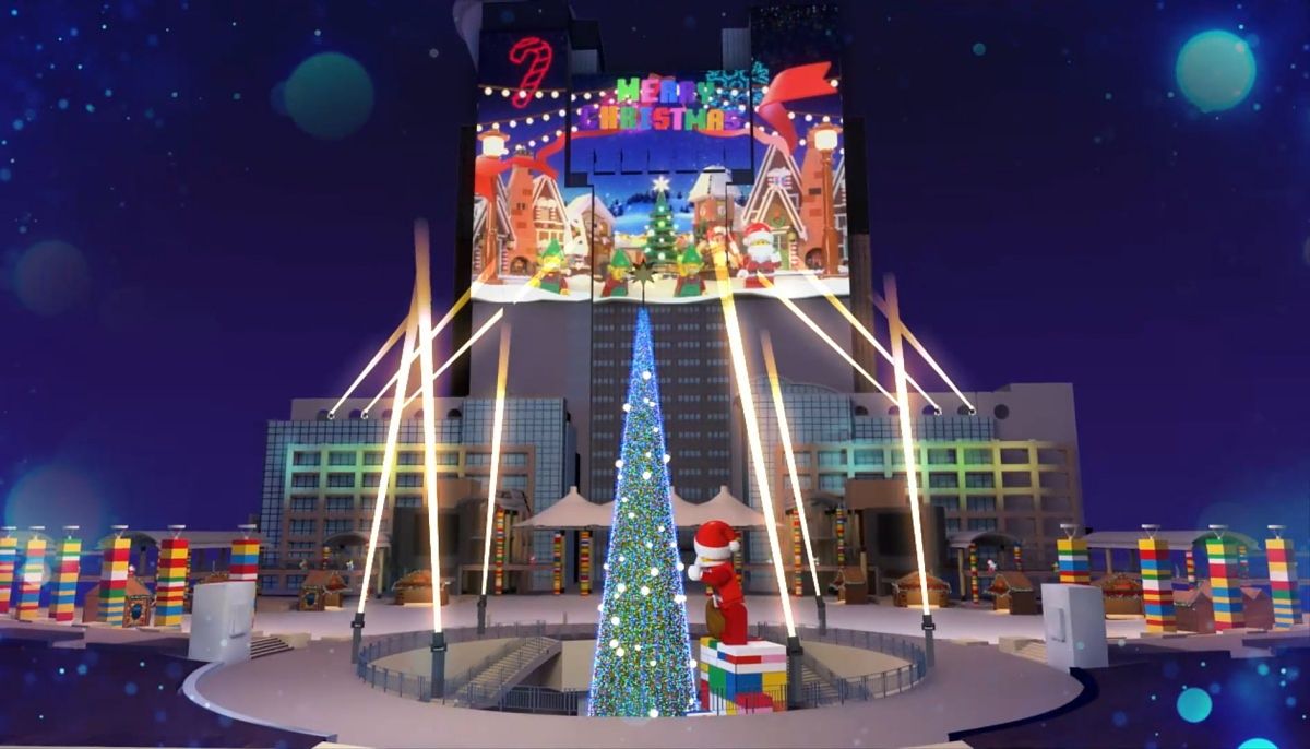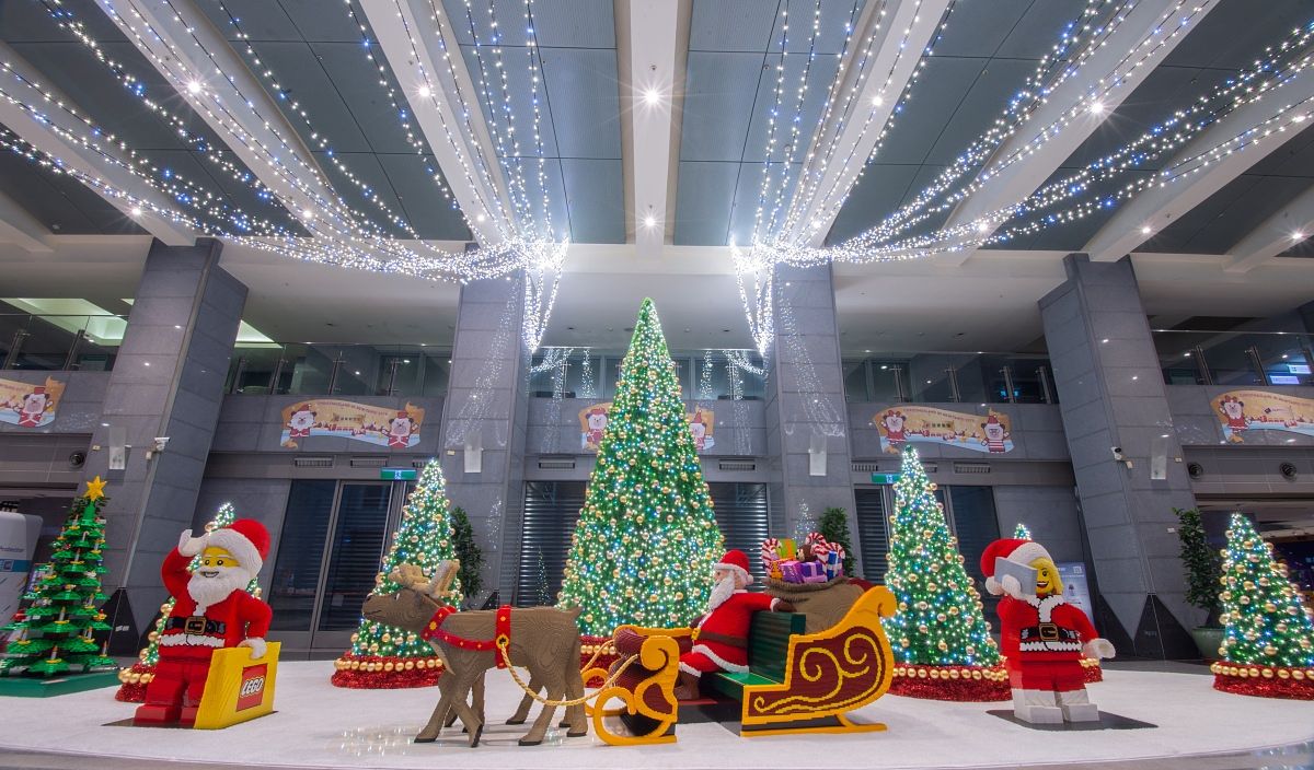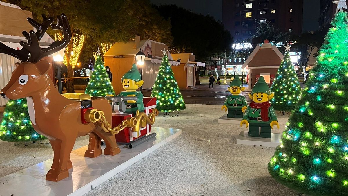 樂高耶誕老人與精靈環繞著市民廣場,呈現出由上而下的童趣樂高世界。