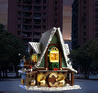 經典樂高盒組「樂高小精靈俱樂部」放大了!小精靈放鬆遊玩的地方,窗戶閃動著光芒,時不時能從裡頭聽到小精靈們開心與幸福的笑聲,讓人好想在白雪覆蓋的復古小木屋前拍照打卡留念。