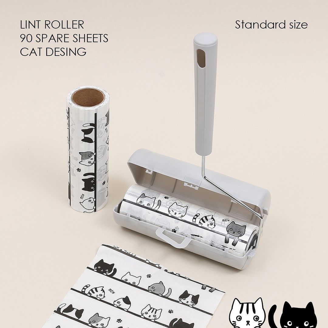 黑白插畫設計的貓米滾輪,共可撕成90張,剛好可以拿來滾滾家中毛孩的毛!