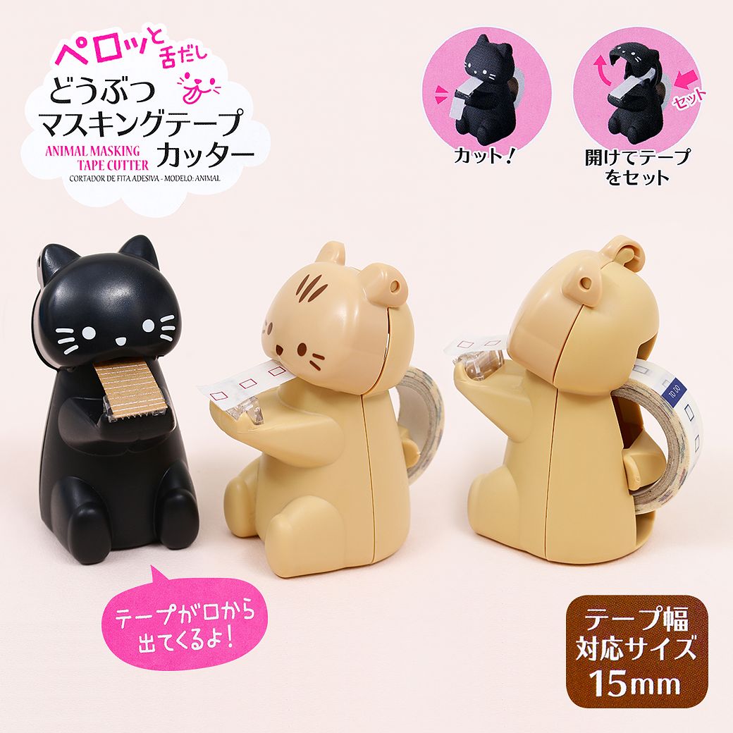 不但具有收納紙膠帶的功能,貓咪從口中吐納出膠帶的模樣超逗趣!