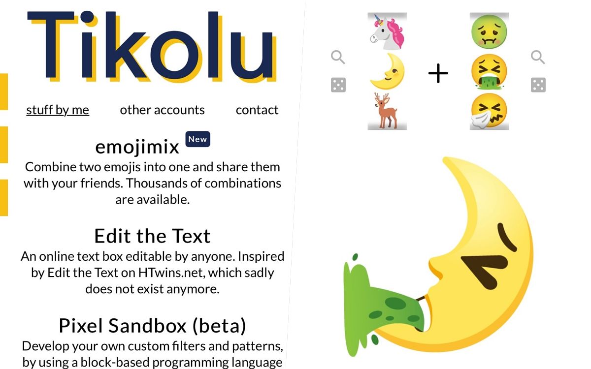 最近網路上流傳一個網站Tikolu能夠自創emoji表情符號,將既定的emoji任意混搭、創造出新的貼圖,成果超有趣會讓人忍不住一玩再玩,沒事不妨也點開網站來玩玩看!