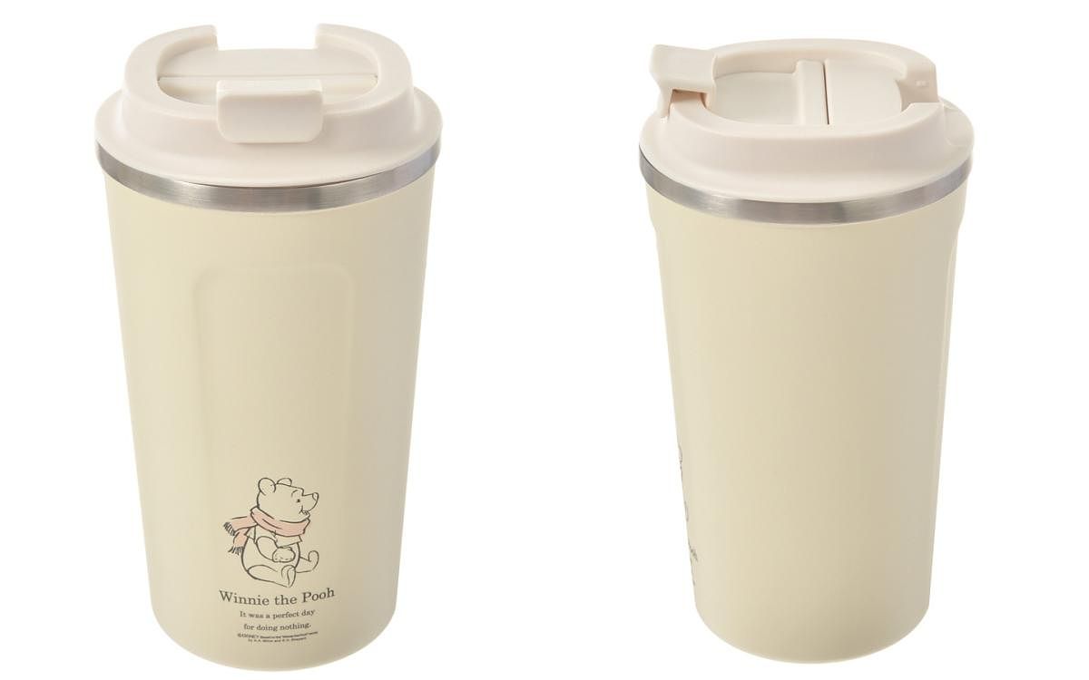 可保冷更可以保溫的維尼隨行杯,整體是奶茶色的簡約設計,圍著圍巾的維尼坐在杯身上,簡簡單單就很好看。飲用口貼心設計了蓋子,飲用後也不怕翻灑。