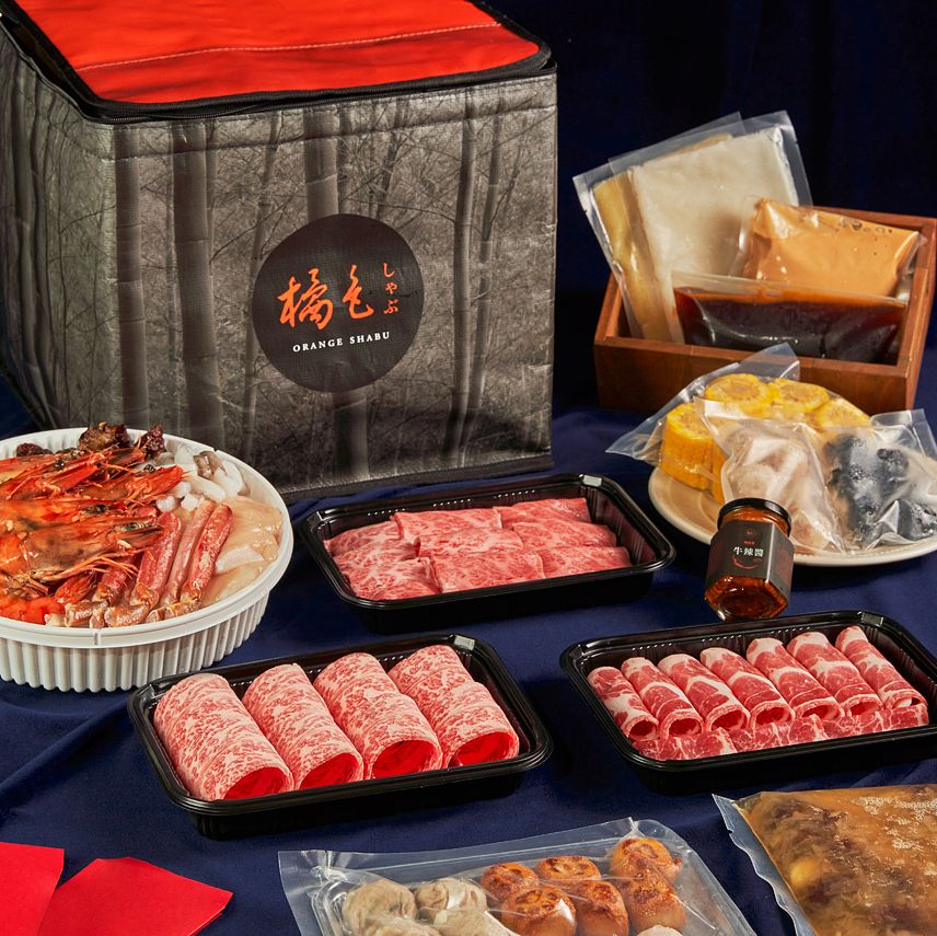 菜色:日本松葉蟹腳、日本干貝、黑玉海參、軟絲鬚、根島生態蝦、日本玉米、墨魚丸、鮮蝦丸、蘑菇芝心堡、燕丸、魚餃、銀耳紅棗蓮子、醬料、橘嚴選私房牛辣醬