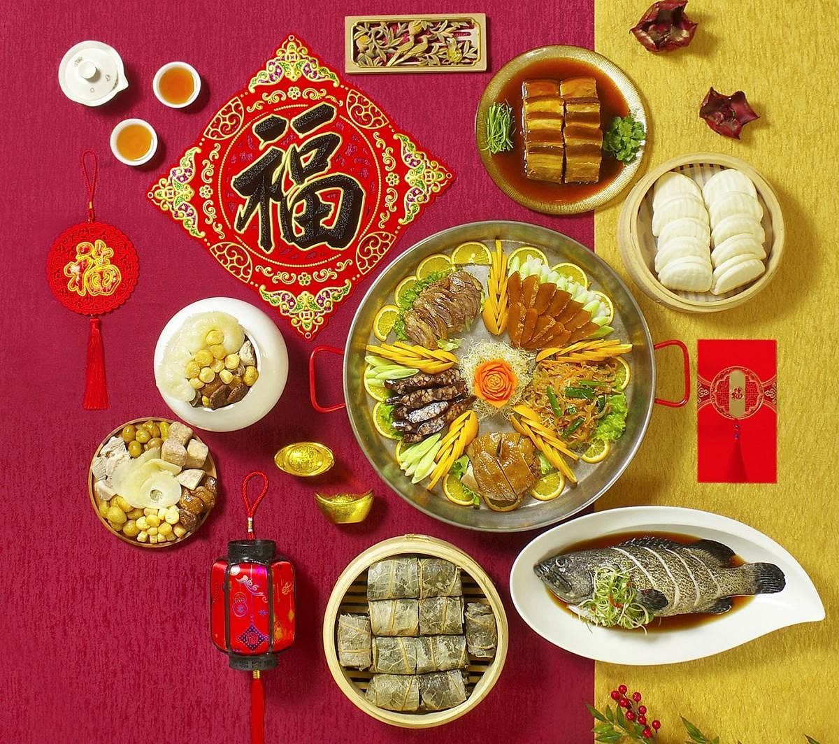 福華再度推出「當天現做外帶年菜」,以金虎年為主題,搭配鴻運、賜福、富貴、高陞等開運吉祥話,推出適合小家庭及三代同堂享用的四人份及六人份外帶年菜組合,售價從6,288元至11,888元不等。另外也集結江南春的鴻運八寶福拼盤、虎掌脆烏參、醋溜龍虎斑和蓬萊邨的懷舊菜尾一品鍋、蓬萊月桃紅槽捆蹄及珍珠坊的鮑魚扒雙冬、黑松露鮮干貝及金沙麥片軟殼蝦等超過20道單點美饌,售價680元至5,800元不等,2021年12月30日前完成預購與付款享9折優惠。