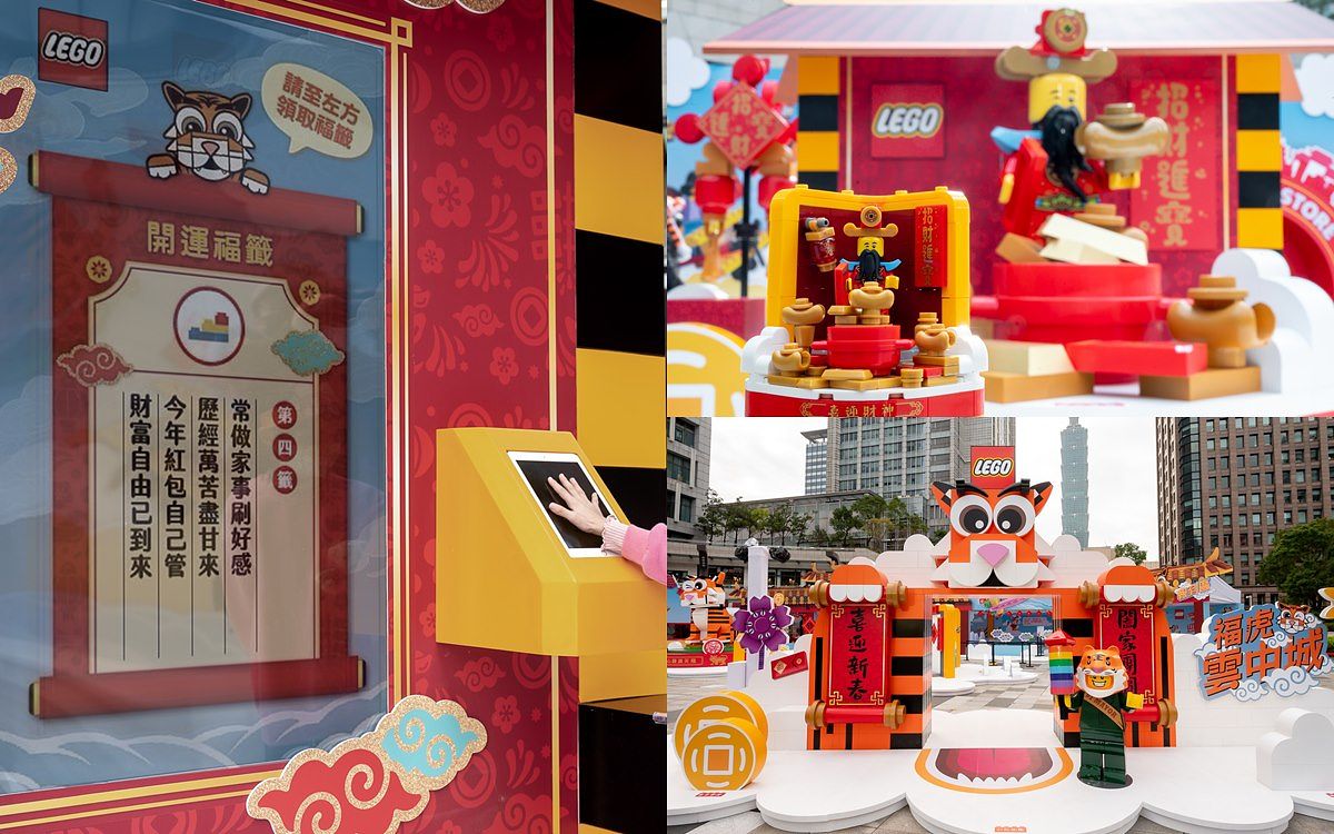 丹麥玩具品牌樂高打造「福虎雲中城」準備迎接虎年到來,在台北統一時代百貨首度結合AR打造4米高「萌虎」許願裝置、虎年限定之「福虎福籤區」也在活動現場提供消費者求取樂高籤詩一探新年運勢。同時設置福虎雲中城闖關賀新年及新年主題盒組中之「樂高財神爺」30倍放大拍照打卡點,打造新年期間不容錯過的樂高地標,新年期間樂高同時準備年年引起消費者爭相收藏的「生肖限定積木組」、首度推出的「虎年紅包春聯組」,以及多項快閃店限定消費贈禮,與消費者一起虎虎生風迎新年。