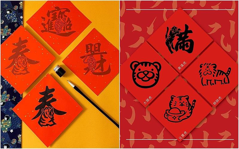 設計品牌YEH & YEH,由兩位平面設計與插畫自由工作者所創立,以日常生活為靈感,運用老虎、貓咪元素結合「想當貓」、「想當老虎」等趣味字句,帶來帶有燙金的低調閃耀春聯,藉由詼諧的反差創作,傳遞在生活中即便有時覺得自己一個人很渺小,但在新的一年仍能時時刻刻如虎添翼、虎虎生風!