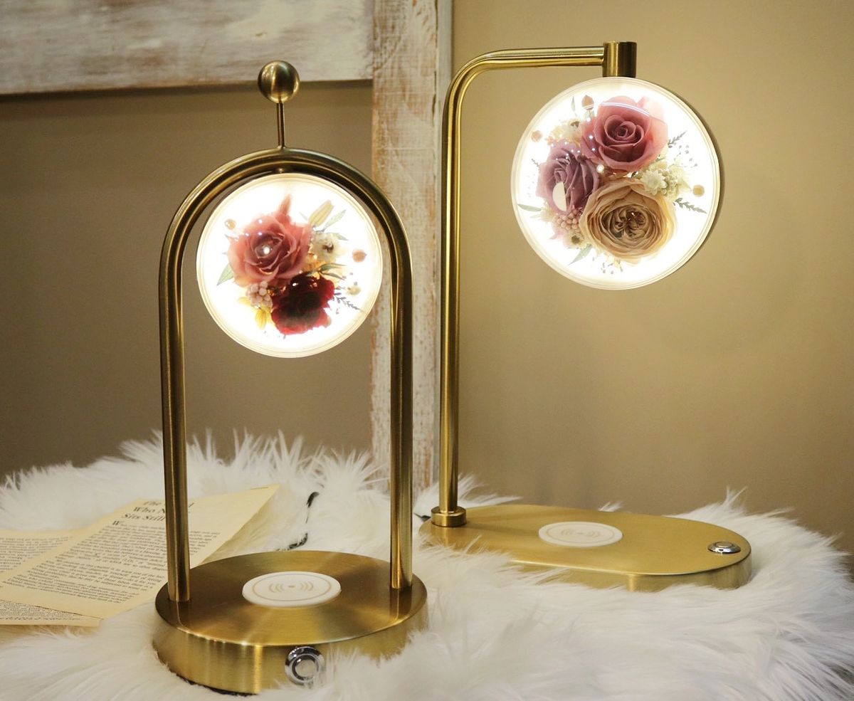 設計品牌「Meetforever」特製絕美永生花無線充電檯燈,將精湛花藝工藝結合充電檯燈,有別於常見的充電座,多了精緻與實用感,無線設計不僅讓你隨時方便充電,貼心的三段式調光設計,為夜晚打造浪漫氣氛。