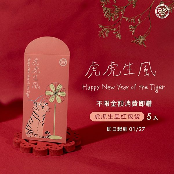 在2022/1/27前購買再加贈煦願軒獨家設計「虎虎生風」紅包袋5只,讓你虎年走路都有風。(數量有限,送完為止)