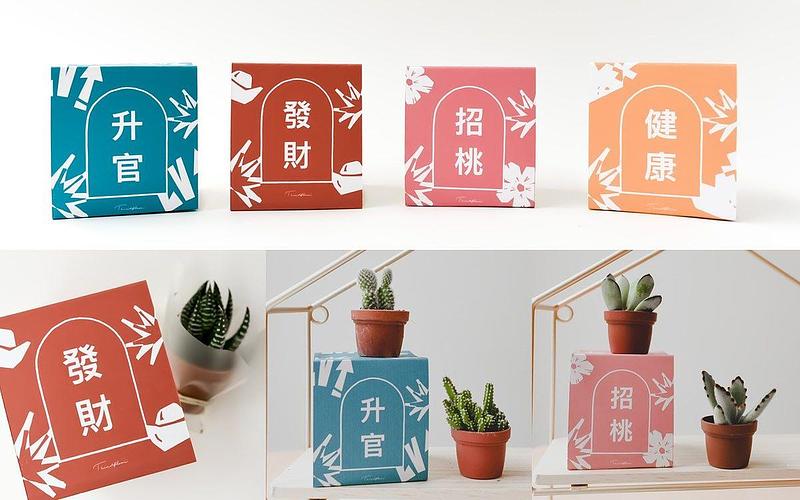 禮盒內除了餅乾外,附有簡單工具與針對現代都市男女需求的開運植栽,譬如與迪士尼史瑞克耳朵造型相似的筒葉花月,葉色鮮綠帶有光澤,在陽光充足時葉緣中容易自然透紅,具有帶桃的意義,葉端呈吸盤狀,又被稱為吸財樹,想要愛情事業兩得意首選開運植物推薦!有「升官」之說的珊瑚大戟則是許多辦族最愛,因其旺盛的生長能力而有興旺大吉之意,擺放於陽台可以化解外面的煞氣,又可疏通活氧。至於對於投資有興趣、想要荷包滿滿錢財賺不完的話,可以選擇有多肉界的聚寶盆的「萬重山」!仙人掌科的萬重山,屬多漿多肉植物,又稱山影、仙人山,有步步高之意能增添個人自信,擺於居家或辦公桌上,不僅招貴人,還能補財庫!工作壓力繁重、擔心身體亮紅燈的人也別擔心,長壽花是具景天酸代謝途徑的植物,有很好的凈化空氣作用,尤其在夜間,可凈化封閉的室內空氣,放在臥室還能增加夫妻和睦的效果,再也不用害怕回家要跪算盤啦!