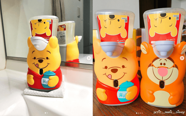 除了推出可愛的「可達鴨茶壺」,日本一間除菌液公司「ミューズ」最近也發表高人氣的「小熊維尼」周邊,是很適合疫情之下使用的泡泡機,只要手伸到下方感應,就可以自動釋放出泡沫,方便洗手,完全不會有接觸的困擾。