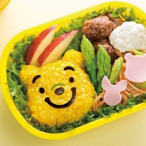 將米飯與內餡放進飯模中輕輕一壓,維尼造型飯糰就順利完成,野餐或小朋友戶外教學自備餐點都方便!