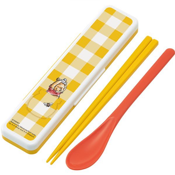 經典紅黃配色,包含湯匙與筷子,靜音收納盒能降低餐具在盒內的撞擊聲。