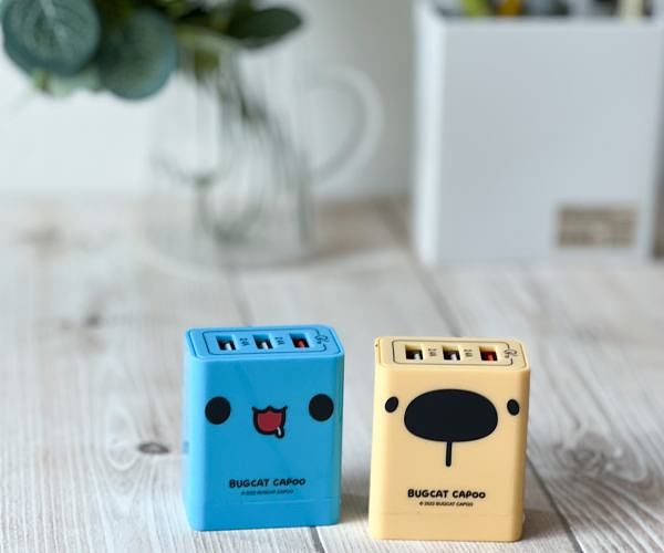 外出系列周邊則有「安全帽+束口後背袋組」推出藍色咖波款、咖波狗狗款,適合推薦情人成套收藏!穿戴出門隨時保有好心情!「絨毛卡套隨身鏡」,推出立體咖波及狗狗兩款造型,伸縮掛勾外出使用超便利,內附壓克力鏡安全防摔;「三孔USB電源供應器」經典角色化身豆腐頭大臉設計,一次提供3個USB槽,輕巧造型外出攜帶方便,另可搭配居家系列的「牛奶瓶留言小夜燈」「無線充電滑鼠墊」一起使用唷!隨時都有咖波陪伴太療癒幸福了。
