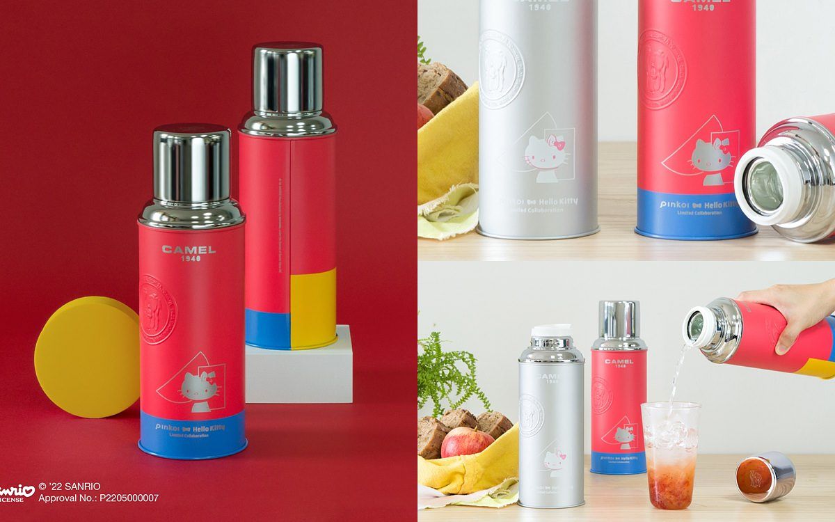 Pinkoi 首次攜手香港知名保溫瓶經典品牌-駱駝牌 CAMEL一同合作,延續Pinkoi x Hello Kitty「Art of Living」創作理念、藝術幾何圖樣結合駱駝牌CAMEL充滿懷舊感的復刻保溫瓶,限時推出經典紅、時尚銀白兩色。不論你是喜愛復古可愛、都會摩登風格,Pinkoi與Hello Kitty都能輕鬆陪伴著你一同野餐踏青、出門旅行,讓設計走入你我生活每一天。