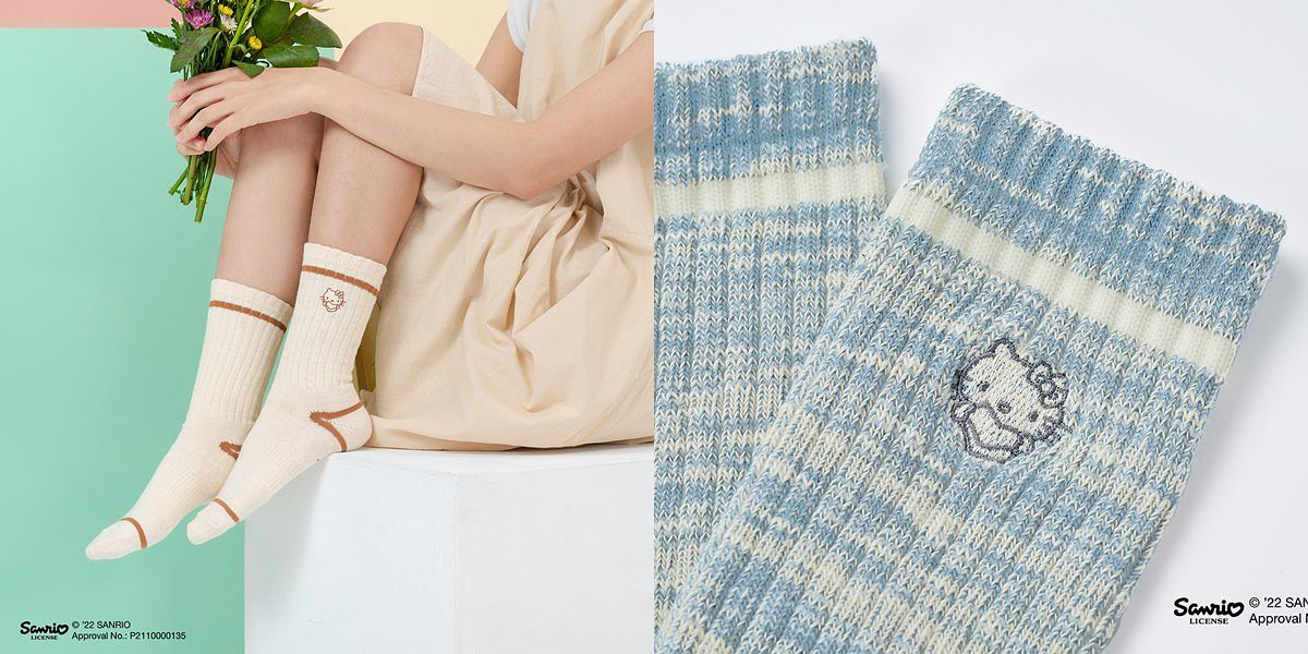 ChangeTone Hello Kitty刺繡混紗中筒襪(M)-限定聯名