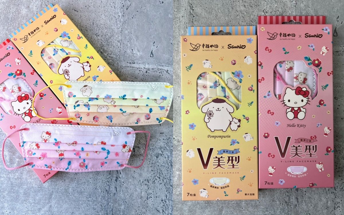 明基佳世達集團明基健康生活精品口罩品牌,幸福物語「V美型醫療口罩」擁有台灣獨家專利剪裁,可修飾臉頰曲線,首次與日本人氣卡通品牌-三麗鷗Sanrio聯名合作,推出萌翻天的「花漾樂園」系列,四大巨星齊聚登場,透過經典角色Hello Kitty凱蒂貓和布丁狗,搭配繁花點點襯托之下,細膩刻劃出幸福氛圍,讓口罩生活的日常更增添一分童趣與繽紛。