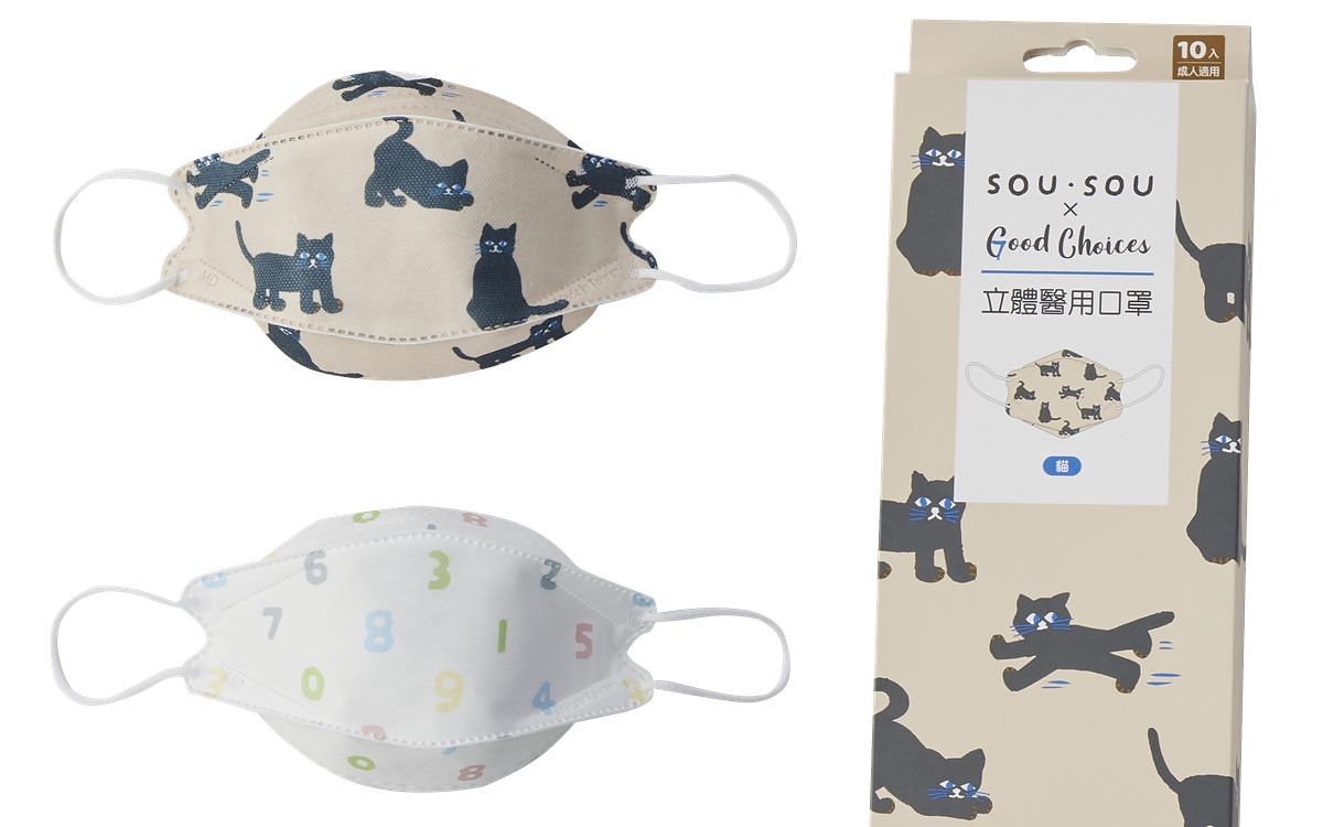 防疫已成日常,各式風格口罩為外出必備的時尚單品,7-ELEVEN限定「SOU・SOU x Good Choices」聯名口罩銷售屢創佳績,此次延續好評、擴大開發「防疫夯物」結構,不但有全球首推的立體口罩結構「康匠立體醫療口罩-SOUSOU十數白/貓」,10入盒裝經典款,更有「康匠醫療口罩-SOU五十音歌」等6款全新夏日限定花色的醫療口罩。此外為鼓勵無痕購物(減塑)推出「時尚包袋」結構,特別推薦可收納的4款「SOUSOU環保購物袋」,以及質感皮質提把的「SOUSOU多用途手提袋-十數黑」,重磅推出多款兼具質感與實用的好物!