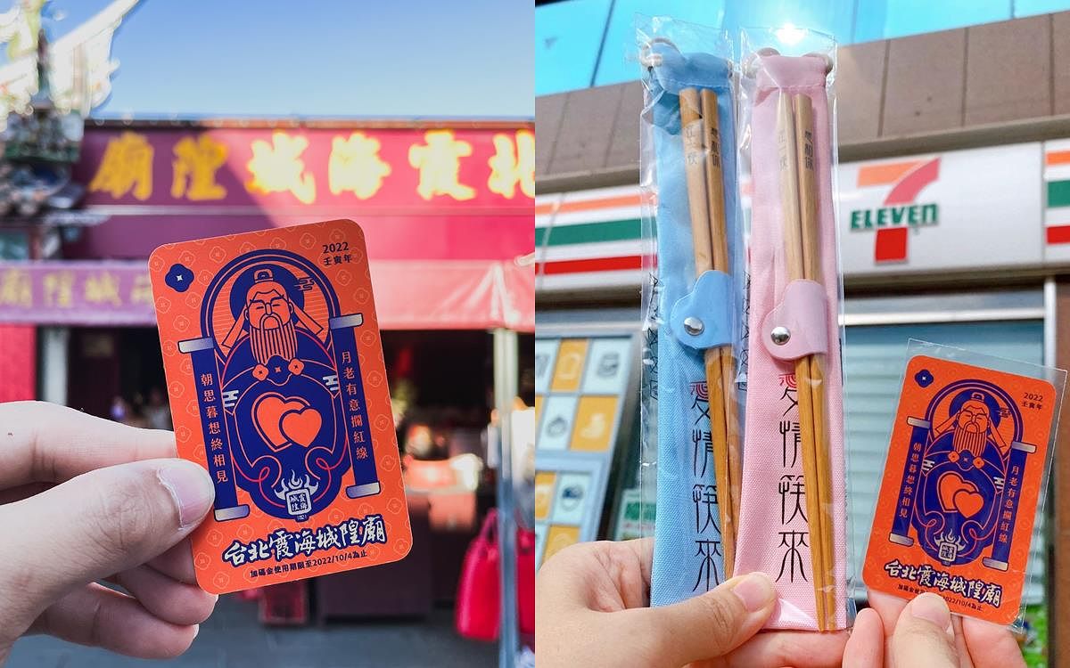7-11攜手最強月老「台北霞海城隍廟」合推「七夕隨取卡」還可加購「愛情筷來姻緣筷」